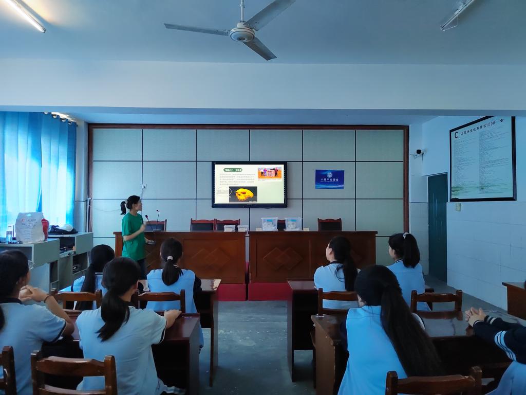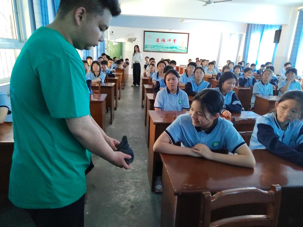 随后,在该校主教学楼6楼大会议室,公司员工党员罗艳以饱满的热情展开了宣讲。她向七年级两个班的同学们介绍了十堰市丰富的古人类文化遗址资源,尤其重点讲解了学堂梁子遗址的发掘情况。为了进一步激发同学们古人类文化的兴趣,详细讲述了“郧县人一号头骨”、“郧县人二号头骨”和“郧县人三号头骨”这三个重要发现的故事,展示了“郧县人一号头骨”的模型,以及从十堰市古人类遗址出土的石器。