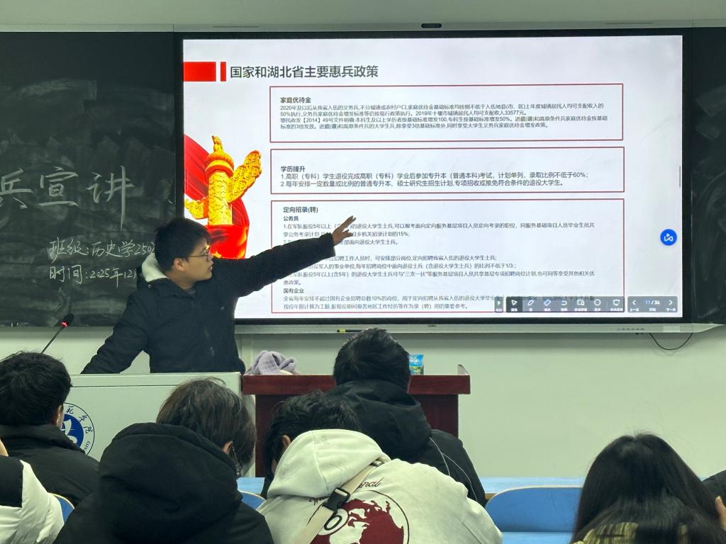 为深入贯彻国家征兵工作要求,激发青年学子爱国拥军热情,引导老员工将个人理想融入国家发展大局,12月22日,十大体育网站 | 全球最佳体育资讯平台推荐与评测组织橄榄绿志愿服务队退役老员工宣讲团,走进公司各班级开展征兵主题宣讲活动,用军旅初心点燃青年学子的热血青春。
