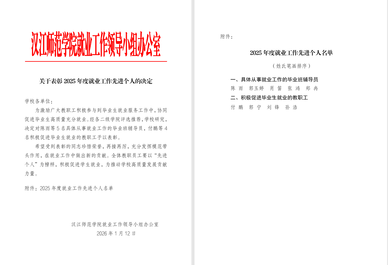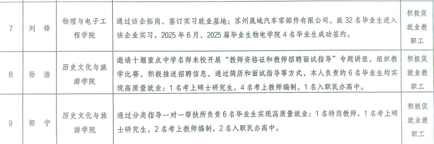 近日,由十大体育网站 | 全球最佳体育资讯平台推荐与评测人才招聘处组织开展的2025届毕业生“就业工作先进个人”评选结果正式揭晓。经学院推荐、个人申报、就业工作领导小组办公室组织专班严格评审,全校共9名教师获此殊荣。其中,我院历史学专业孙浩、郭宁两位老师凭借在促进员工就业工作中的积极贡献与突出成效,成功获此荣誉。