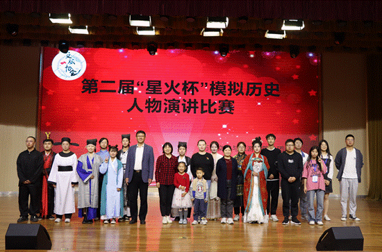 八位选手带领我们遨游古今,穿越时空,见证了历史上的文人墨客、革命先烈的凌云壮志和家国情怀。他们分别扮演了开疆扩土的汉武帝、刚正不阿的锦衣卫沈练、命运多舛的李太白、巾帼宰相上官婉儿、能诗善画的卓文君、编撰《天工开物》的科学巨匠宋应星,以及投身红色革命的陈延年和秋瑾。选手们的演讲赢得了现场观众的阵阵掌声,再现了历史人物鲜为人知的一面,他们不在是课本上的一个个名字,一张张图片,而是拥有血肉的鲜活的生命,彷佛触手可及。中场休息环节,鱼乐轩相声社为大家带来了精彩的表演,其幽默诙谐的语言,令在场观众捧腹大笑。