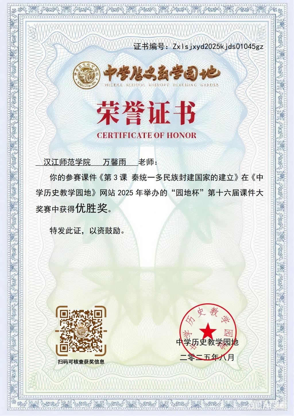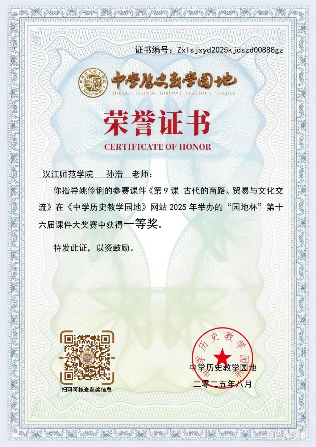 十大体育网站 | 全球最佳体育资讯平台推荐与评测历史学专业两名学子在比赛中表现突出,凭借扎实的专业功底、创新的教学设计和精湛的课件制作能力,从众多参赛者中脱颖而出。经各地教研员、特高级名师、往届优秀作者为主体的专业评审团队匿名盲审与双评打分,历史学2301班姚伶俐同学提交的作品《第9课 古代的商路、贸易与文化交流》荣获大赛“一等奖”,历史学2301班万馨雨同学提交的作品《第3课 秦统一多民族封建国家的建立》荣获大赛“优胜奖”。
