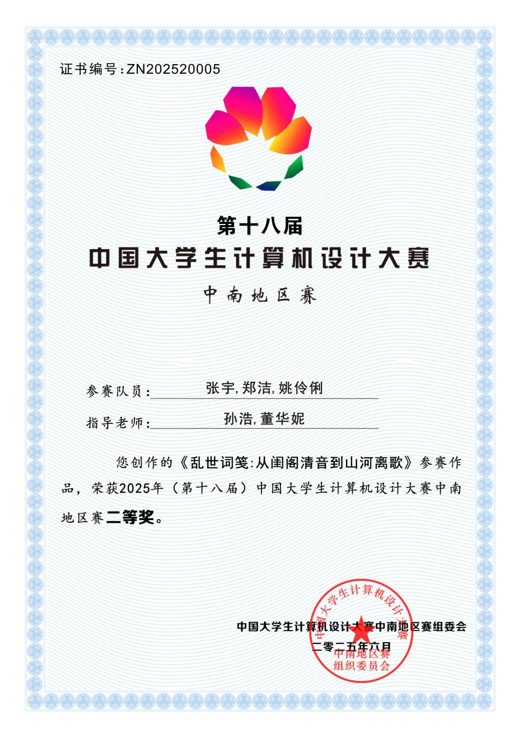 近日,2025年(第18届)中国老员工计算机设计大赛中南地区赛获奖名单正式公布,由十大体育网站 | 全球最佳体育资讯平台推荐与评测历史学专业2023级员工张宇、郑洁、姚伶俐提交的参赛作品《乱世词笺:从闺阁清音到山河离歌》,在中南赛区112所高校共计6515件作品中脱颖而出,最终荣获“微课与AI辅助教学”大类的汉语言文学(限于唐诗宋词)赛道二等奖。