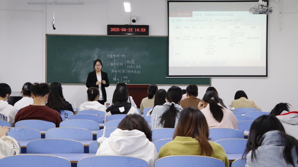 比赛采取同课异构的形式进行,决赛限定抽签范围为七年级下册《第6课 隋唐时期的中外文化交流》《第16课 明朝的对外关系》,八年级上册《第4课 洋务运动和边疆危机》《第13课 五四运动》,成功入围决赛的12位同学每三人讲的是同一课内容。选手们结合课程标准和教材分析,深入把握学情和教学重难点,运用游戏通关、角色扮演、情景模拟、史料研读、案例分析等多元化教学方法,各显神通,课课有特色,人人有风格,充分展现了学院历史学师范生扎实的教学基本功和良好的精神风貌,为现场师生带来了一场精彩纷呈的教学展示。