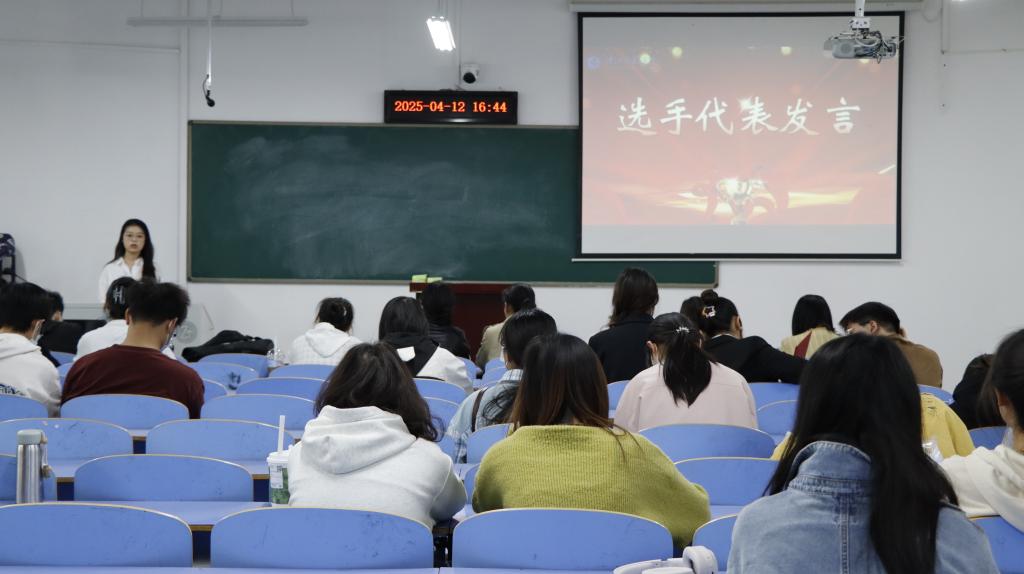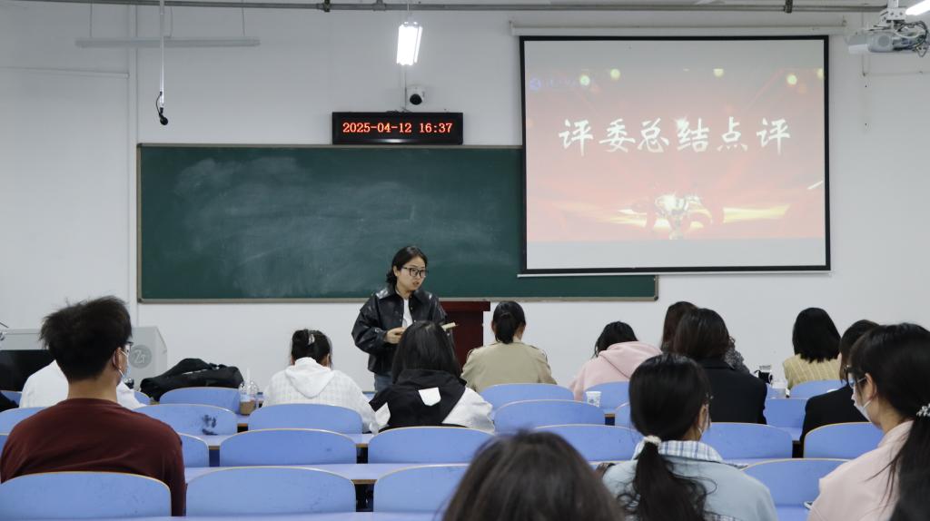 雷老师点评结束后,荣获一等奖第一名的郑金伶同学作为参赛选手代表进行发言,她与大家分享了自己在参赛过程中的收获和经验,为其他同学提供了有益的参考和借鉴。